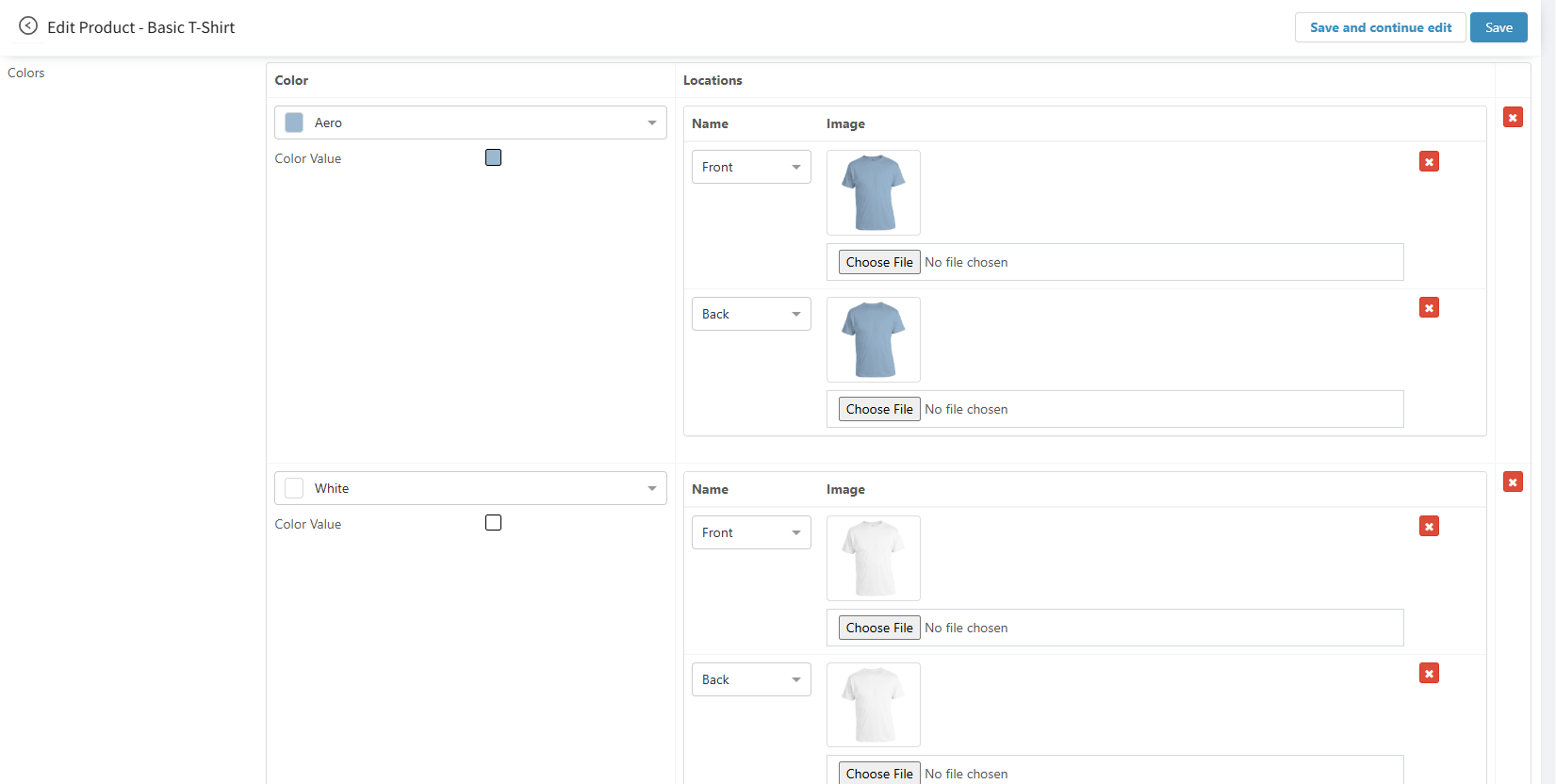 > Color options are defined in the Admin Panel under each product’s configuration.
