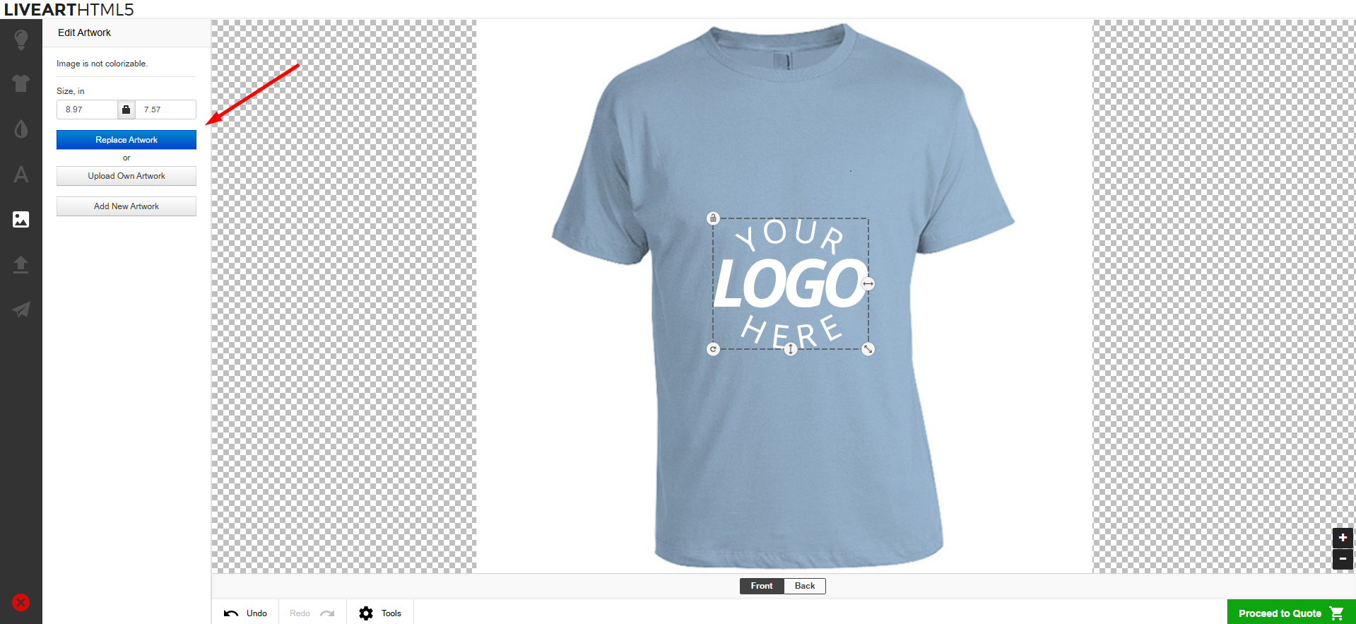 > LiveArt automatically calculates the price based on the quantity selected in the designer.